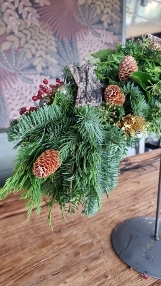 Je krijgt persoonlijke hulp en werkt met mooie verse materialen zoals Nobiles, conifeer, hulst en eucalyptus.